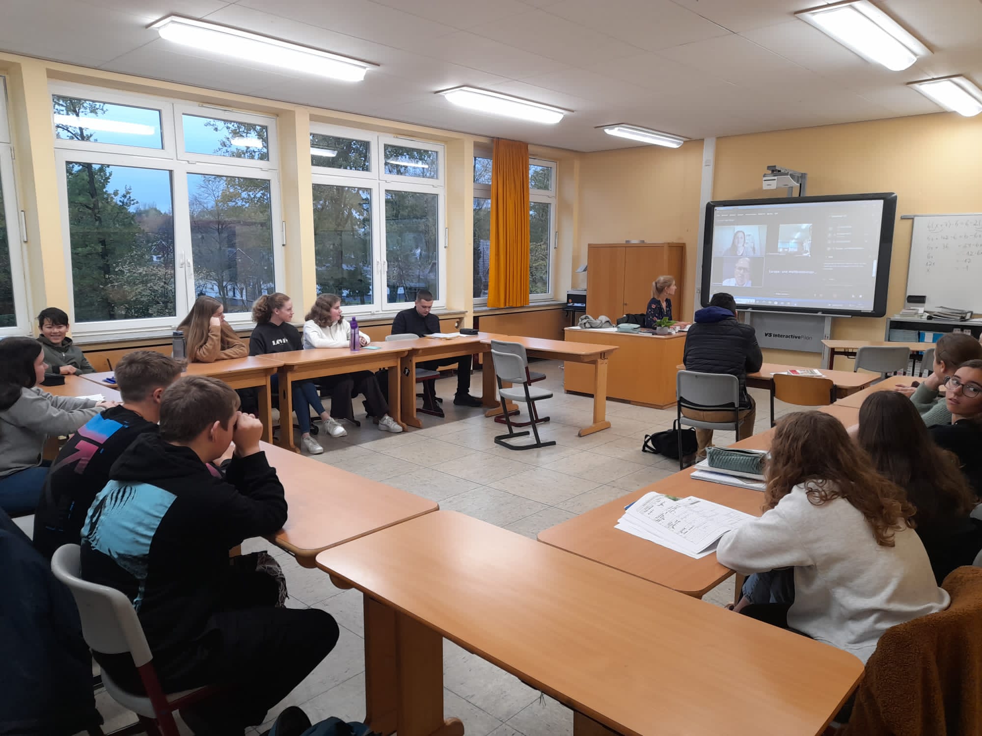 Das Europäische Parlament in die Schule holen, europäische Politik hautnah erleben und einem Abgeordneten des Parlaments Fragen zu stellen- all diese Möglichkeiten bot das EP-Onlinegespräch am 07.11.2022 an der AFS Molbergen. Frau Hick aus dem Besucherzentrum des Europäischen Parlaments und Herr Gieseke, Mitglied der Europäischen Volkspartei (Epp Fraktion, Christdemokraten) und Abgeordneter des Europäischen Parlaments gaben dem Französischkurs der Klassen 9 via Videochat einen Einblick in ihre Arbeit. Zunächst erläuterte Frau Hick Merkmale und Besonderheiten des Europäischen Parlaments wie z.B. dessen Größe von 705 Abgeordneten, das Fehlen einer Opposition usw. Einem Foto aus dem Plenarsaal konnten die SchülerInnen entnehmen, wo sie sich als Besucher der Stadt Brüssel im Januar 2023 im Rahmen einer geplanten Schülerreise aufhalten dürfen. Anschließend schaltete sich der Abgeordnete Herr Gieseke dazu und berichtete über aktuelle Themen im Parlament, vornehmlich mit dem Schwerpunkt Verkehr und Mobilität, aber auch über seinen Alltag als viel reisender Abgeordneter. Als Abschluss wurde ein Video einer kürzlich gehaltenen Rede von Herrn Gieseke im Parlament gezeigt und eine Pommesbude in fußläufiger Nähe des Parlaments als Anlaufstelle für einen Mittagssnack nach Besuch des Eps empfohlen. Schülerfragen wie „Warum ist der Beruf des Parlamentariers empfehlenswert?“ und „Welche Sprachen muss man als Abgeordneter sprechen?“ zeigen, wie schülernah und interessengezielt die Veranstaltung von den Organisatoren vorbereitet worden war. Deutlich wurde im Laufe der Veranstaltung, dass das Europäische Parlament und sie Stadt Brüssel eine Reise wert sind- „Politik und Pommes“ scheinen eine gute Kombination zu sein. Fest steht, dass sich alle auf die Reise nach Brüssel freuen und das Ep-Onlinegespräch neugierig auf weitere Informationen zur europäischen Politik gemacht hat.