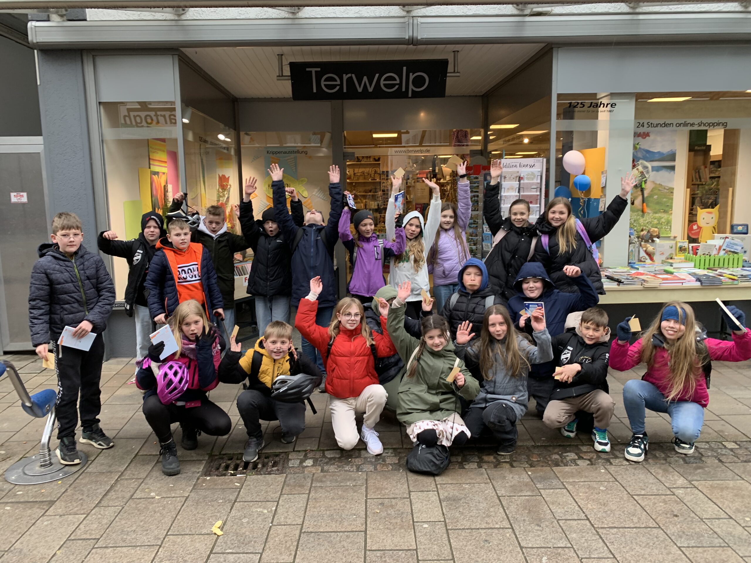 Der 23.04.2024 ist der diesjährige UNESCO-Welttag des Buches, ein Aktionstag für das Lesen, Bücher und den Austausch mit Autoren. Wir nehmen diesen Tag zum Anlass, erneut an der Leseförderinitiative der Stiftung Lesen und weiterer Schirmherren teilzunehmen und mit unseren 5. Klassen die Buchhandlung Terwelp in Cloppenburg zu besuchen. Gleichzeitig haben wir diesen Tag genutzt, mit dem Fahrrad nach Cloppenburg zu fahren und so die Fähigkeiten im Fahrradfahren, im Gruppenfahren usw. zu schulen. Stolz konnten unsere Schüler im Anschluss an einen Einblick in die Buchhandlung und deren Sortiment ihren Buchgutschein für die Aktion „Ich schenke dir eine Geschichte“ einlösen. Sie erhielten den Comicroman „Mission Roboter- ein spannender Fall für die Glücksagentur“ von Anke Girod und Timo Grubing. Darin geht es um Mila und Baran, auf deren Dachterrasse eines Tages ein merkwürdiges Objekt landet und allerhand Fragen aufwirft. Wie der spannende Fall ausgeht, in dem die Kinder dann stecken, kann bei unseren 5. Klässlern nachgefragt werden. Wir wünschen unseren Schülern viel Spaß beim Lesen und bedanken uns bei der Buchhandlung Terwelp und den begleitenden Lehrkräften.#