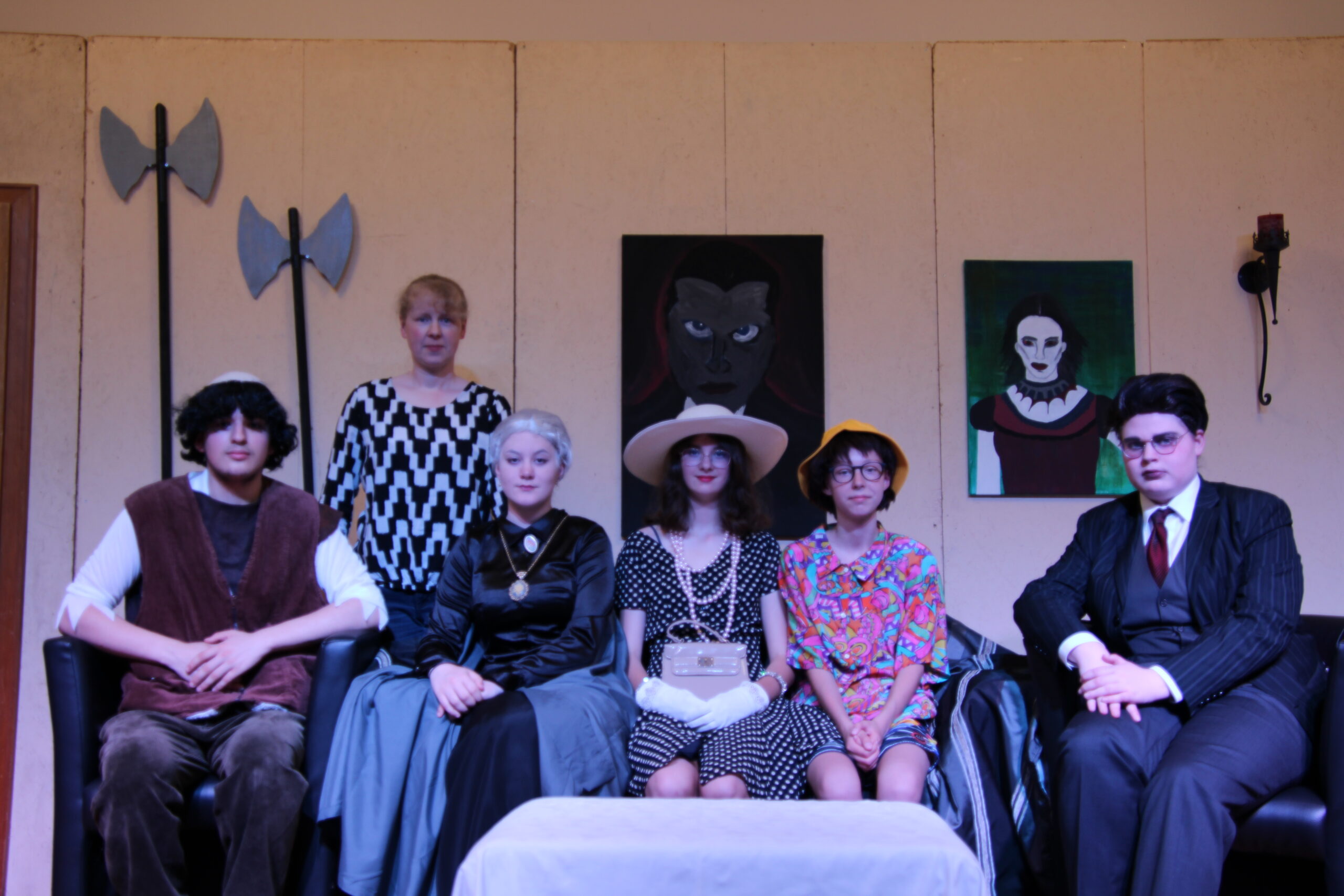 Wir sind stolz auf das Engagement und Talent unserer Schauspieler, Bühnenhelfer und allen Weiteren, die die Realisierung des Stücks möglich gemacht haben. Bedanken möchten wir uns bei Frau Lameyer für Licht- und Tontechnik, Frau Nienaber für die Anfertigung eines Videos, der Schülerfirmenabteilung Crazy Art um Frau Schäfer, die Bilder als Requisiten gemalt hatte und den Hausmeistern, die einen Holzsarg gebaut haben, vor allem aber der Leitung Frau Wichmann.