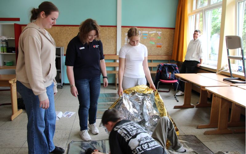 Wie man in echten Notfällen ruhig bleibt und richtig handelt haben die Profis vom DRK Cloppenburg heute mit Engagement und guter Laune unserem Jahrgang 9 gezeigt.