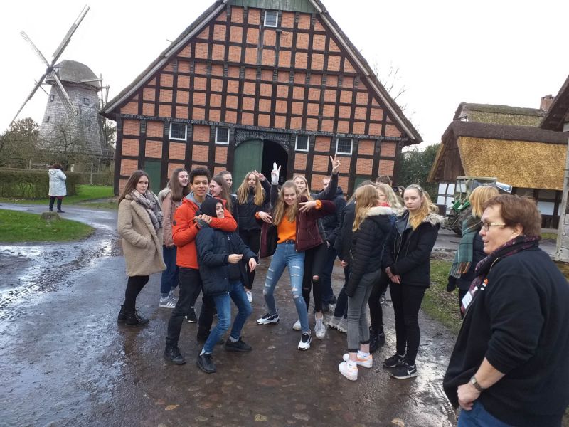 Der Schüleraustausch 2020 startete am 4. März. Die SuS aus Assen erreichten am Mittwoch mit ihren beiden Lehrkräften die Schule. Die Aufregung auf beiden Seiten war sehr groß. Nach dem gegenseitigen Kennenlernen fuhren die SuS mit ihren Lehrkräften nach Cloppenburg zum Museumsdorf. Der diesjährige Austausch steht unter dem Motto“Geschichte“. Im Museumsdorf startete das Projekt „Essen wie damals“ Die SuS kochten einen Eintopf und erfuhren dabei nebenbei, wie man in so einem „Rauchhaus“ lebte.