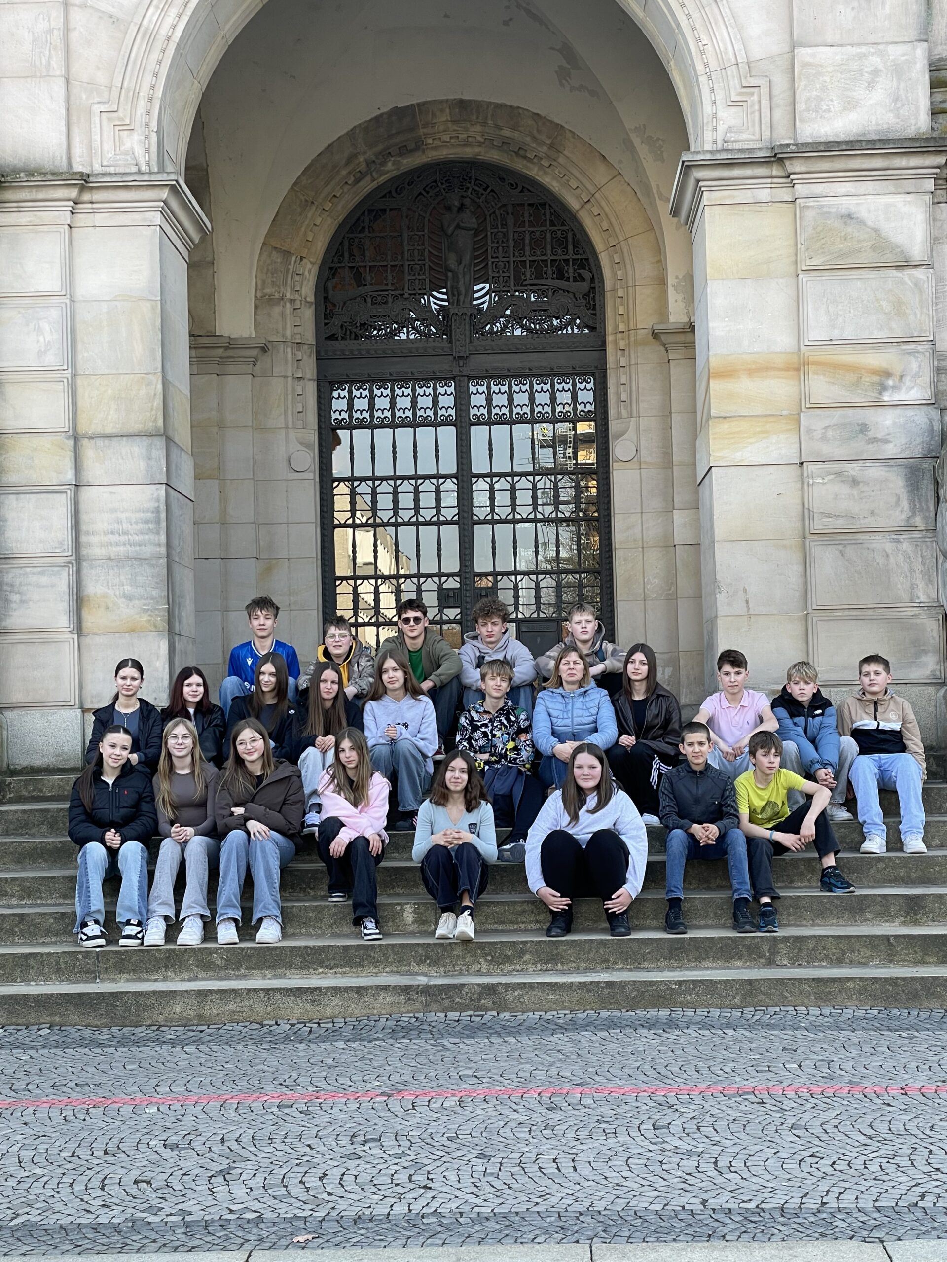 12 Kinder, 12 große Koffer und reichlich freudige Aufregung – das war wohl die erste Bilanz Der Eltern und Lehrkräfte, als sich am 13. März 2023 um 8 Uhr morgens die Schüler und Schülerinnen der Klassen 7 am Bahnhof in Cloppenburg trafen, um mit ihren beiden Lehrerinnen, Frau Mädche und Frau Burke-Schlarmann, gemeinsam nach Polen aufzubrechen. Es ging mit dem Zug in Richtung Stettin. Dort sollten 12 polnische Schüler aus Kaszmierz mit ihren Lehrkräften, Frau Tarandt und Frau Mackowiak, die Molberger Reisegruppe am späten Nachmittag im Empfang nehmen, um gemeinsam vier aufregende Tage zu verbringen und die drittgrößte polnische Metropole zu erkunden.